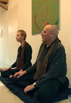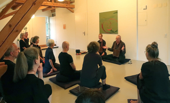 In der von Dogen geprägten Praxis des Soto-Zen in der Nachfolge von Shunryu Suzuki nimmt die Verkörperung der Zen-Haltung im Zazen einen zentralen Platz ein. Harald und Friederike wiesen auf die immer neue Übung des offenen Gewahrseins hin, welche das Gefängnis des Ich öffnet, in dem wir oft nicht ungern verweilen. Auch wenn wir unter der Trennung vom Ganzen leiden, fürchten wir uns auch gleichzeitig vor dem Sprung in die Grenzenlosigkeit.