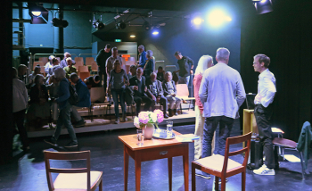 Auf der kleinen Theaterbühne erschien an diesem Abend ein bezaubernder Teeraum, dessen Zubehör Mulan Sun Buschor aus ihrer Winterthurer Tee-Schule Kōshin-an (向心庵) nach Zürich mitgebracht hatte. Die Teemeisterin, Zen-Meditierende und Architektin liess uns in der japanischen Teezeremonie Zen im Alltag sinnlich und spirituell erleben.